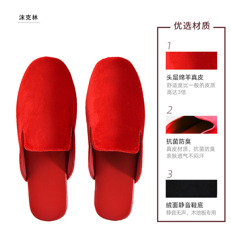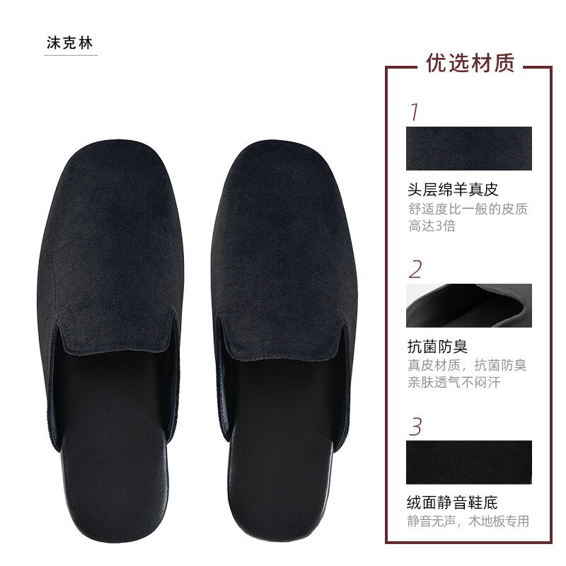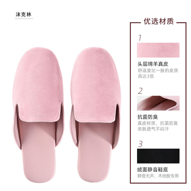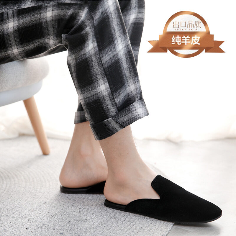 Light Luxury High-End High-End High-Grade Sheepskin Leather Slippers Home Indoor Wooden Floor Men and Women Home Office