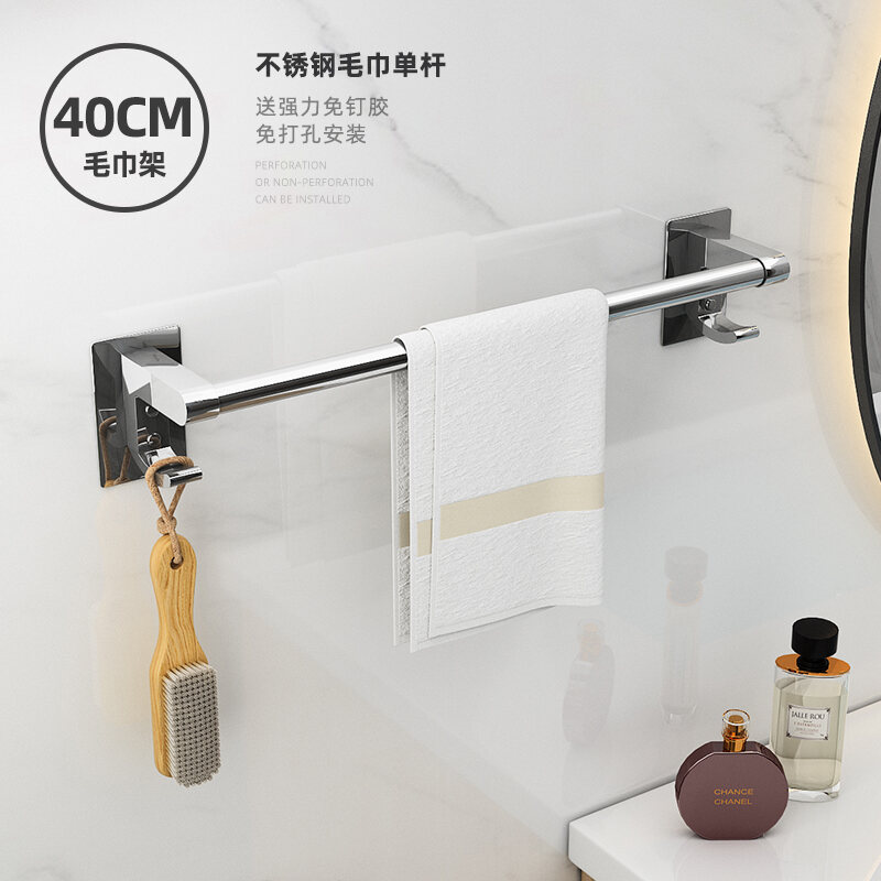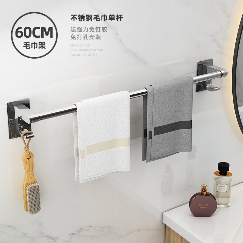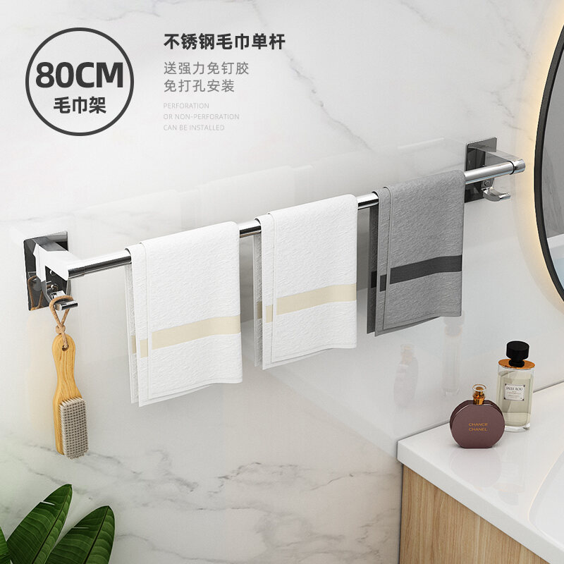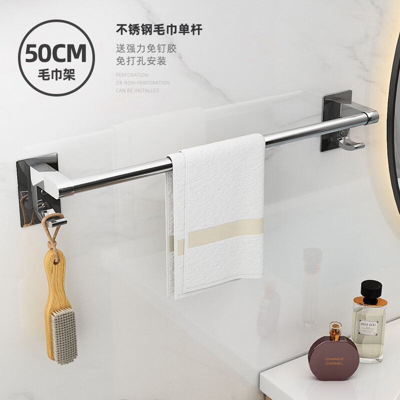 Towel Rack Punch-free Bathroom Stainless Steel Towel Rack Bathroom Hanging Rack Toilet Rack Towel Bar Single Rod