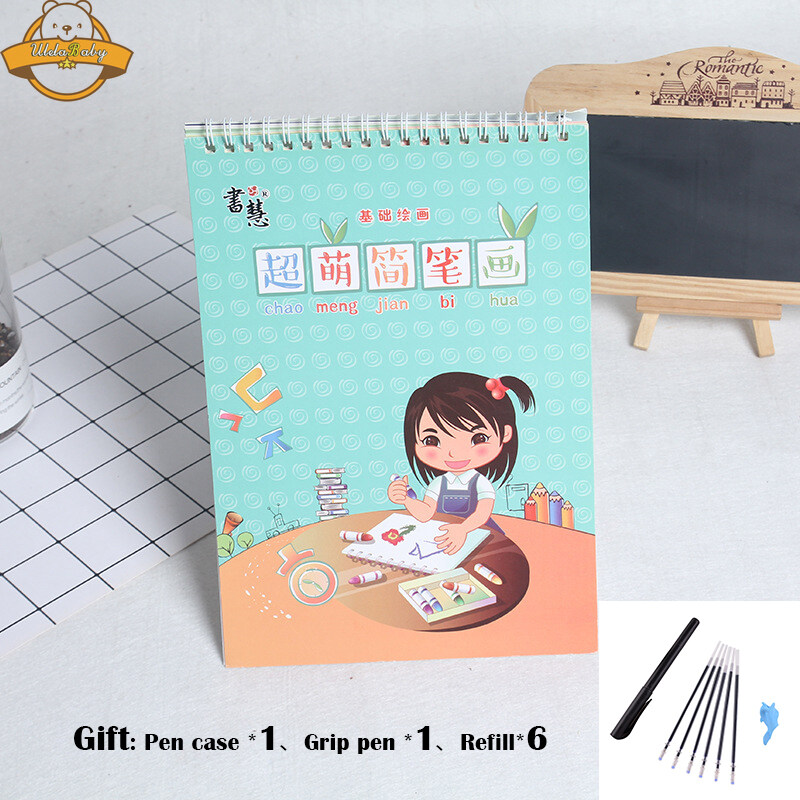 UlelaBaby Reusable Calligraphy Practice 3D Drawing Book Groove Animal /Fruit / Vegetable / Plant Cartoon Children Coloring Books Kids Painting Book for 3-8 Years