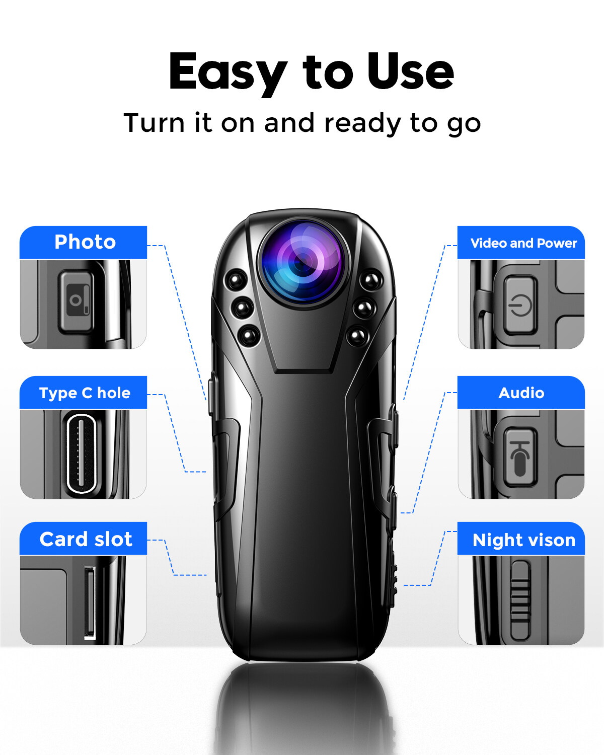 BOBLOV L02 Mini Body Camera, 1080P Night Vision IR Video Camcorder Audio Recorder Indoor Outdoor Security Mini IP Camera 125 Wide Degree