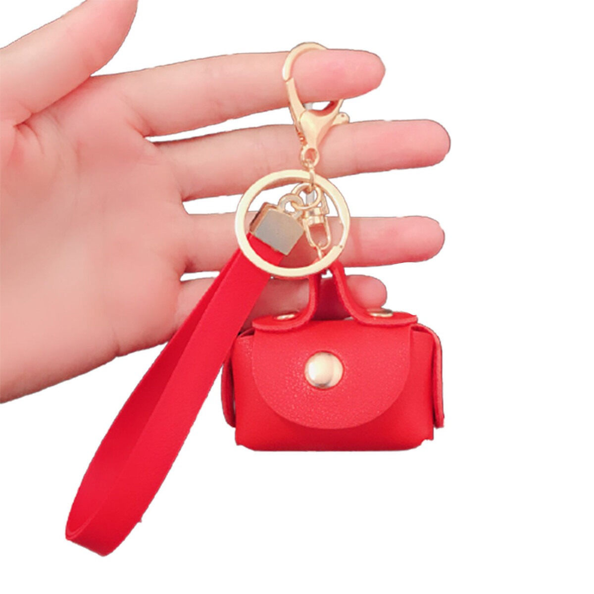 1. Creative keychain mini bag design with buckle and strap handle.