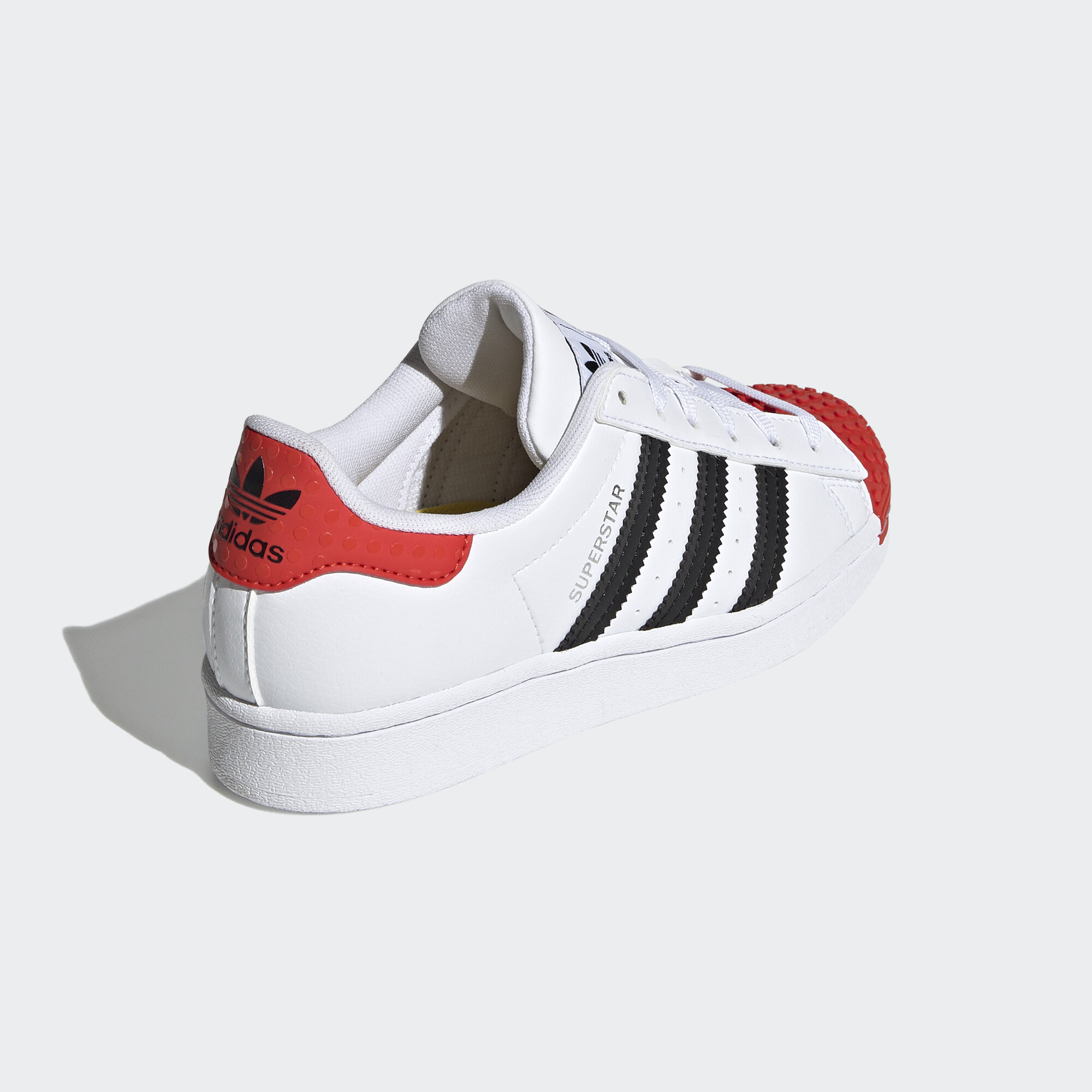 Style, fun and comfort is not a bad combination to have. Superstar LEGO® shoes feature iconic 3-Stripe branding and playful design details with LEGO brick-inspired texture on the shell-toe and heel-tab. Comfortable sockliners have been designed to allow for wearing around the clock – ideal for patio-to-playground scenarios.