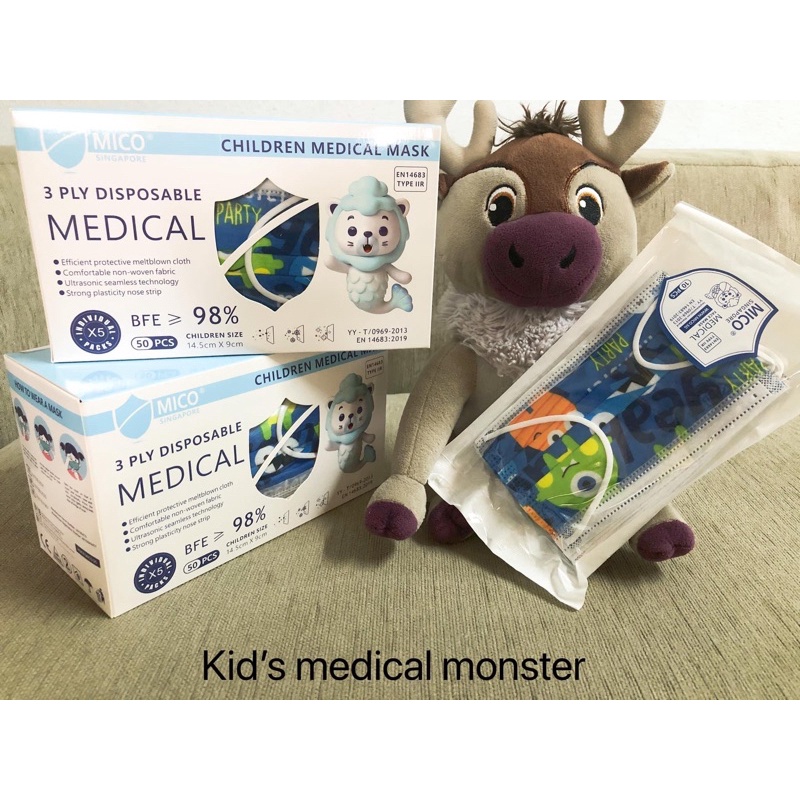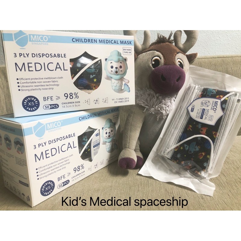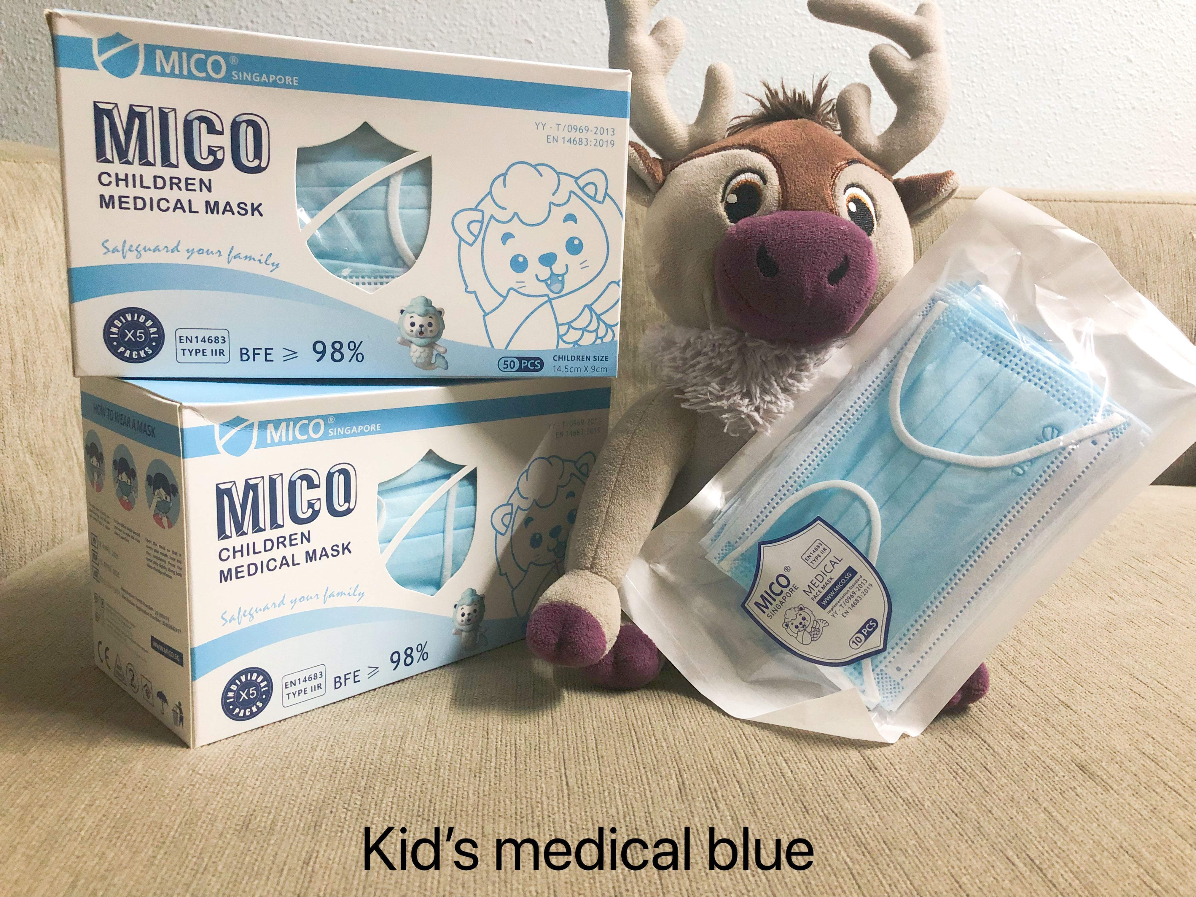 [SG BRAND] MICO Kids Mask 3ply Medical Surgical Mask BFE>98% Disposable Face Mask 30pcs