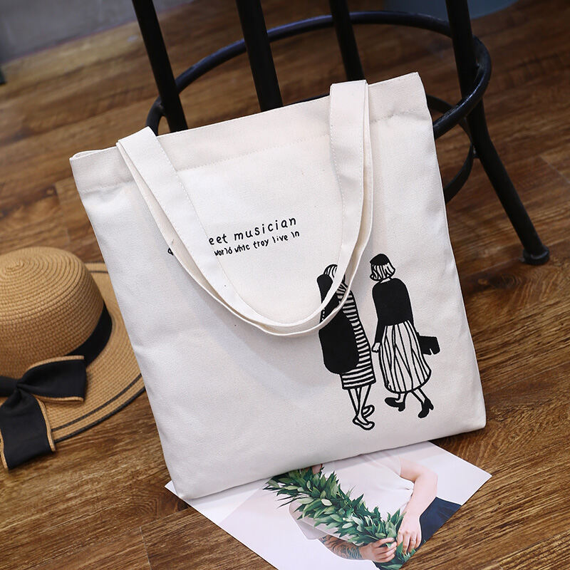Xiaoqing New Canvas Bag Korean Style Shoulder Bag Women's Artistic Handbag Student Schoolbag Casual Large Capacity Shopping Bag