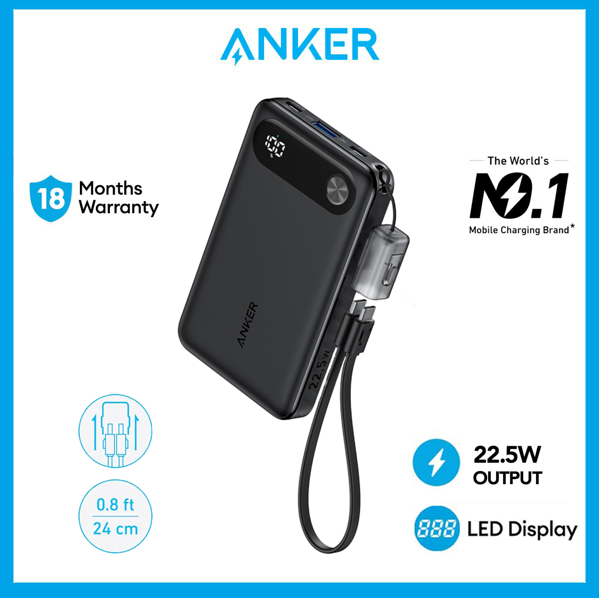 Anker Powercore Fast Charging PowerBank 10000mAh Power Bank Portable Charger USB-C Cable Lanyard 22.5W Max Output Fast Charge USB-C USB-A Port A1257