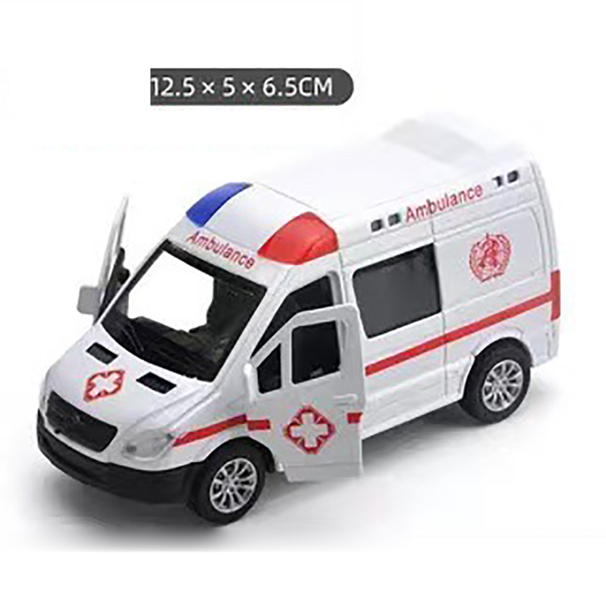 Meettoy Children's Alloy Emergency Ambulance Toy With Sound And Light Pull Back Can Open The Door Cars for Baby Boys Girls Birthday Christmas Gifts