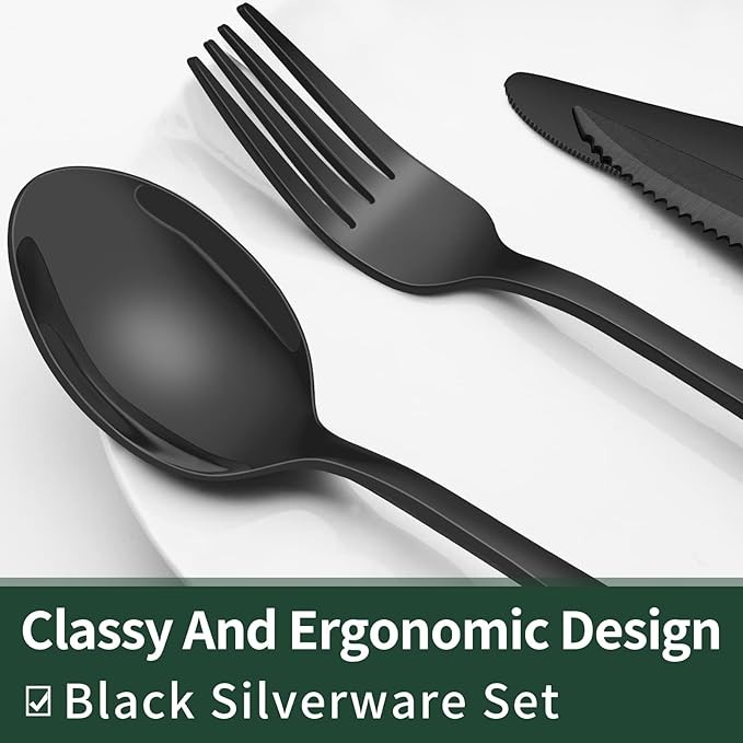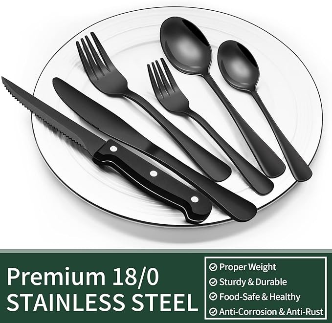 24-piece black silverware set with steak knives, black cutlery set, 4-piece set, food-grade stainless steel cutlery set, mirror-polished cutlery set for home dining