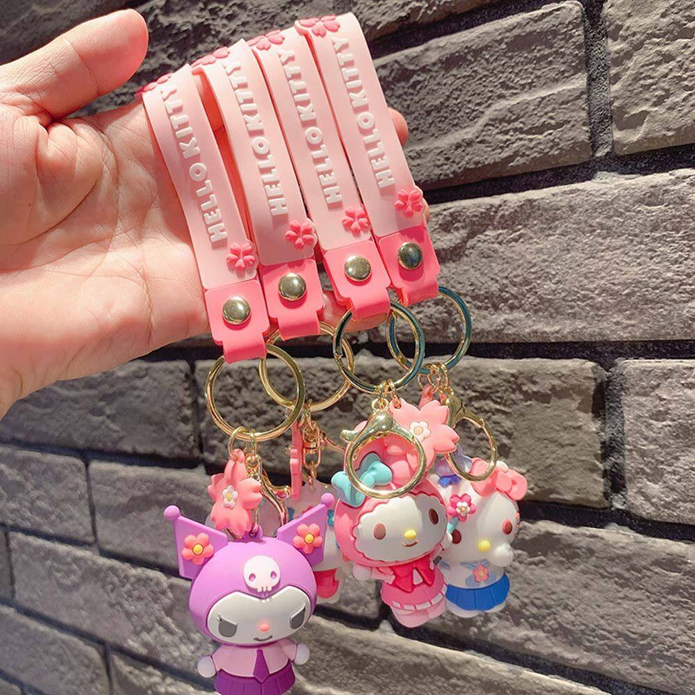 HUIHEYU Fashion Kawaii Kitty Cat Backpack Accessory Fidget Toys Key Trinket Sakura Ornaments Mobile Pendant Melody Key Buckle Anime Keychain Cartoon Keyring