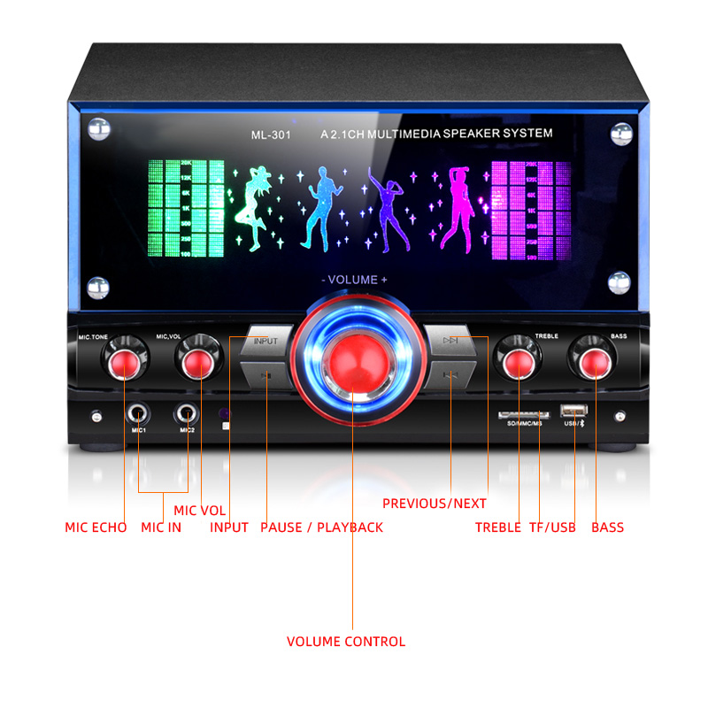 Active Subwoofer Multimedia 2.1 Stereo Sound Computer/TV Speakers System For Gaming/Music/Movies/Microphone singing/Bluetooth/USB