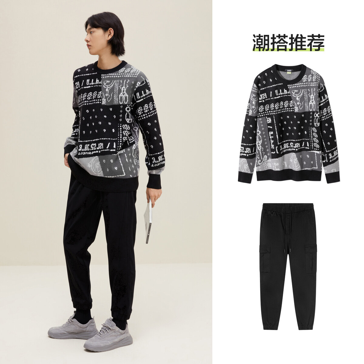 Semir Sweater Men Stitching Contrast Color 2022 Winter New Fashion Loose Knitted Sweater Trend