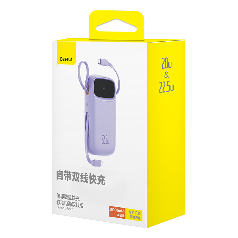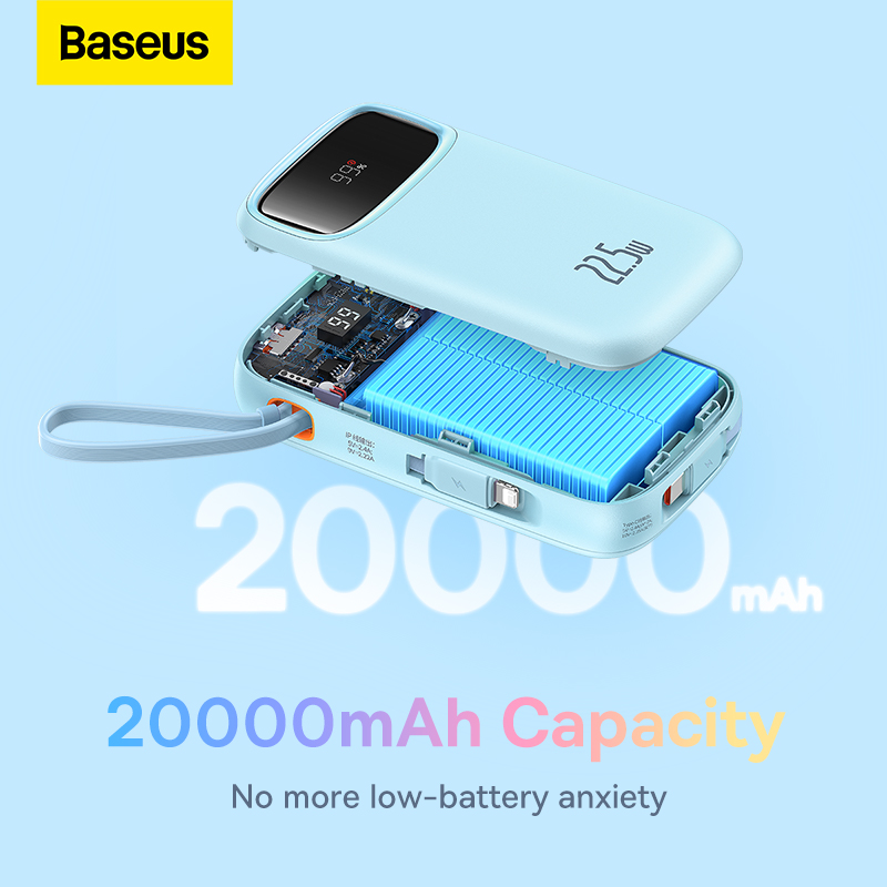 Baseus Double Cable Power Bank 20000mAh/10000mAh Digital Display 20W PD 4 Ports Fast Charging Built in Cables Portable Power Bank