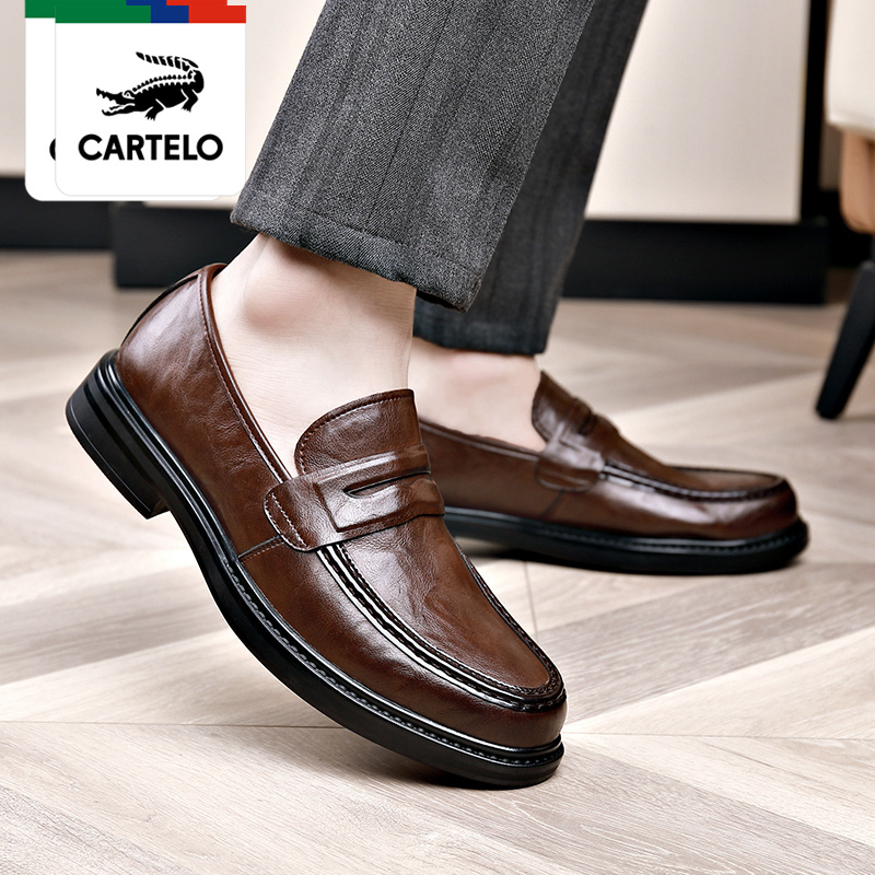 GGMM CARO Caro Crocodile Winter Fleece-lined Warm Soft Bottom Casual Leather Shoes Men's Slip-on round Toe Peas Shoes