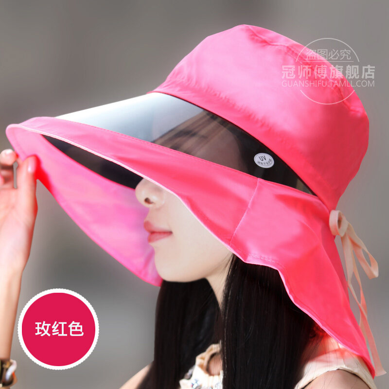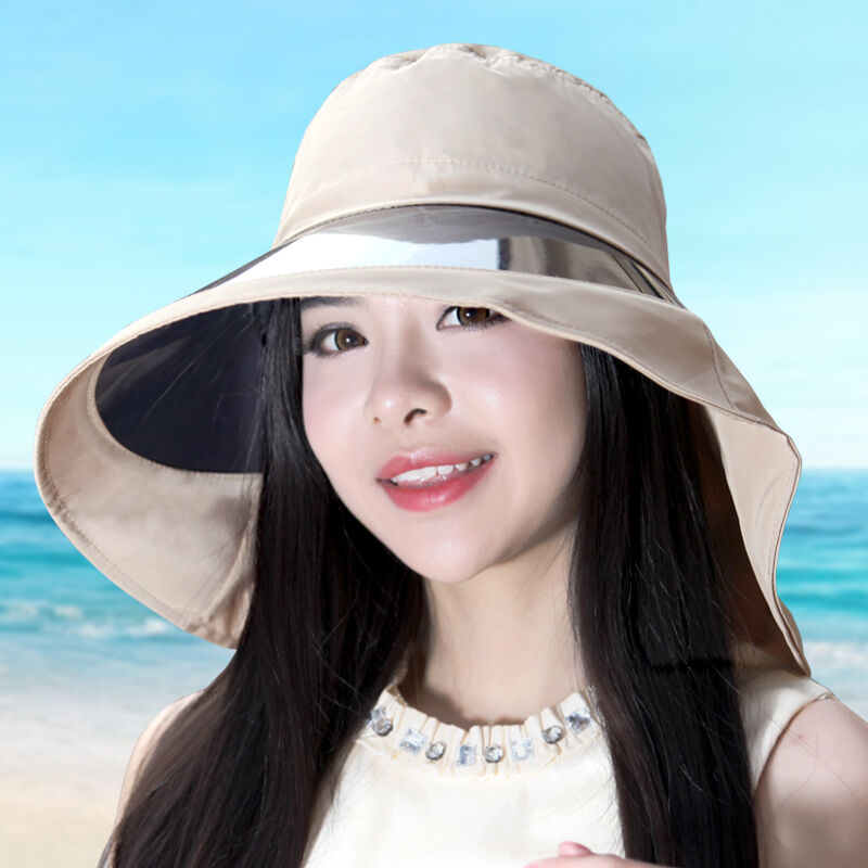 1pc Wide Brim Anti-UV Bucket Hat Foldable Portable Women Beach Sun Hat Big Visors With Windproof Rope Summer Fisherman Cap