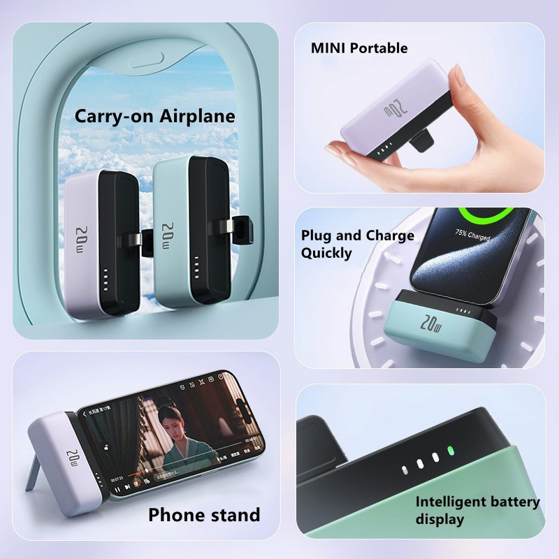 PD20W Fast Charging Powerbank 5000mah Mini Power Bank with LED Light Phone Holder Mobile Emergency Power