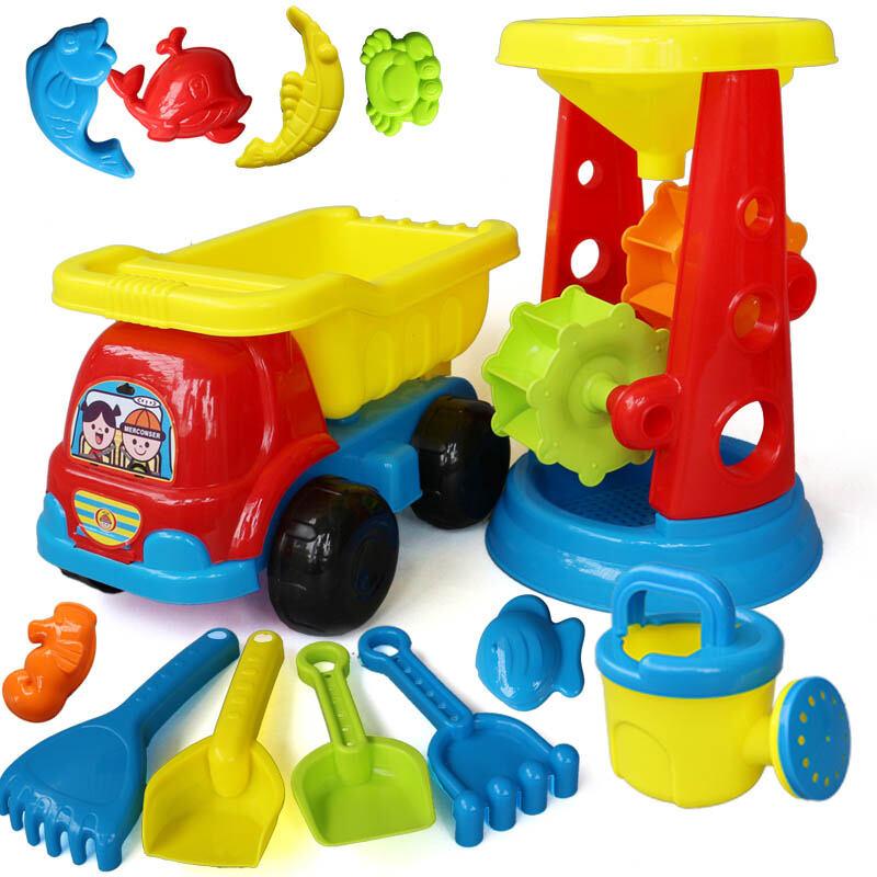 Children's Beach Toy Set Car Boy's and Girl's Hourglass Bucket for Playing Water Baby's Sand Pool Digging Shovel Toy and Tool for Sand Playing