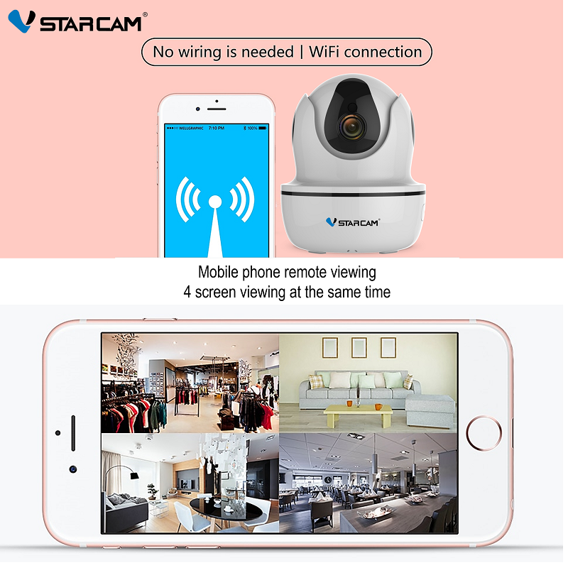 Upgraded 3MP VStarcam C26S Wireless WIFI IP camera with AI Functions+Night Vision+Two-Way Audio [PC-Mobile App:Eye4]