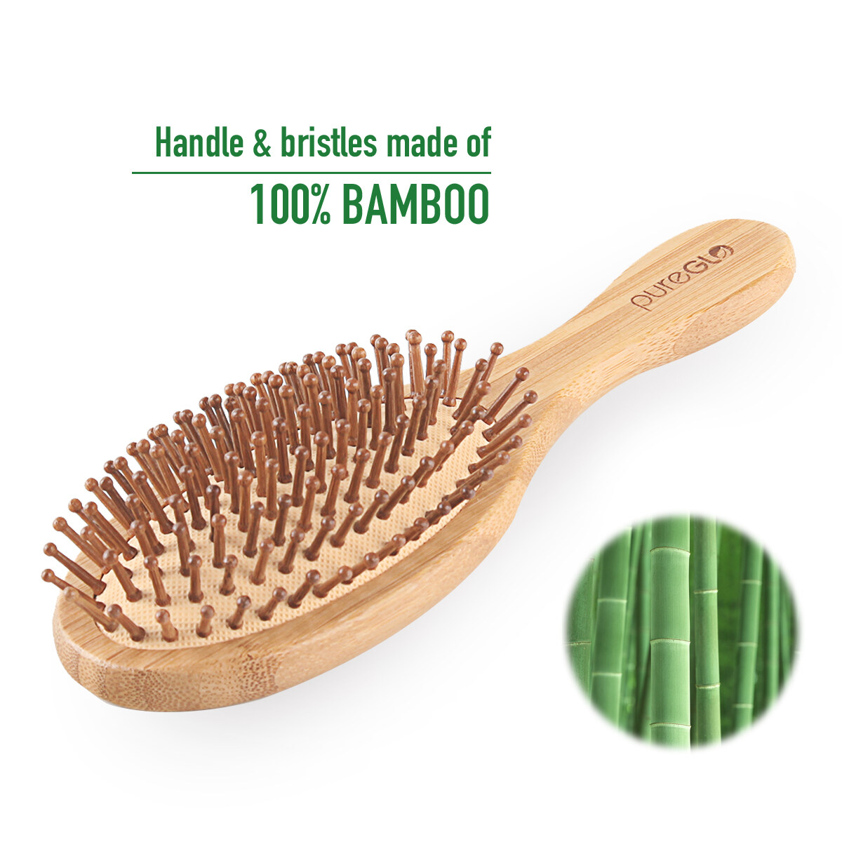 PureGLO Natural Wooden Oval Massage Bamboo paddle Hair Brush For Women And Men With Gift Box pet catmi comb dog hair comb