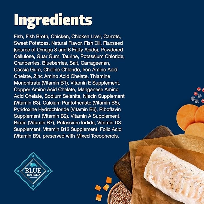 • MADE WITHOUT WHEAT: BLUE wet cat food contains NO chicken (or poultry) by-product meals, NO corn, wheat (a common thickening agent used by many other brands) or soy, and NO artificial flavors or preservatives
