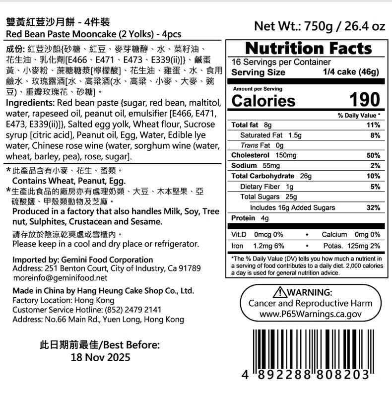 Maxim's Double Yolk Red Bean Paste Mooncake