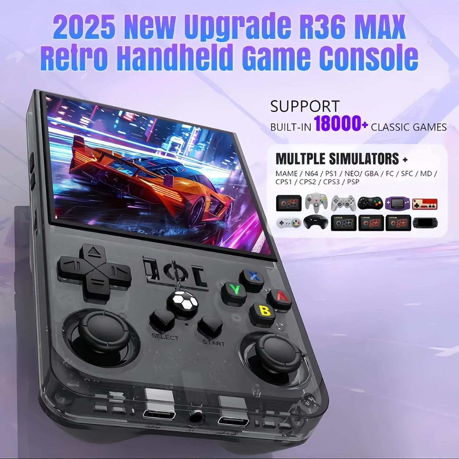 • R36MAX Vibrant Visuals with 4 Inch IPS Screen: This2025 New Upgrade R36s 4-inch IPS screen is a real standout. resolution of 720*720 flaunts vibrant colors and razor-sharp visuals, instantly elevating your gaming fun. When you're embarking on epic adventures or engaging in high-speed chases, every scene comes to life vividly. The advanced display tech guarantees clear images, easing eye strain during long play. It's like a portal to a more engaging gaming realm, making each session a pleasure.