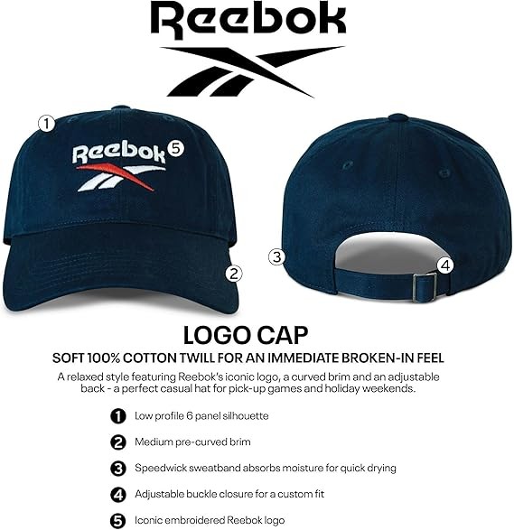 • QUALITY MATERIALS: Our soft 100% cotton twill fabric delivers maximum comfort, making it the perfect choice for those who appreciate an immediate broke-in feel. This cap features a lofted embroidered iconic Reebok logo when quality and style matter most
